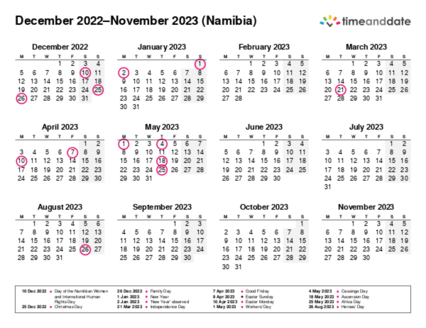 2024 Calendar With Holidays Namibia. Click the dates in the calendar to view details for that date. All one-page yearly calendars are based on Gregorian calendar. Calendar for the whole year, calendar for any month, lunar calendar, printable calendar.. This free calendar template by General Blue starts on Sunday. Multiple styles are available which are all free to download, print, edit, or customize. In order to see the lunar calendar for another year or another country, please select on the right-hand side. In the table below, you will find the details of the holidays and when they are observed. The year starts on Monday and ends on Tuesday.